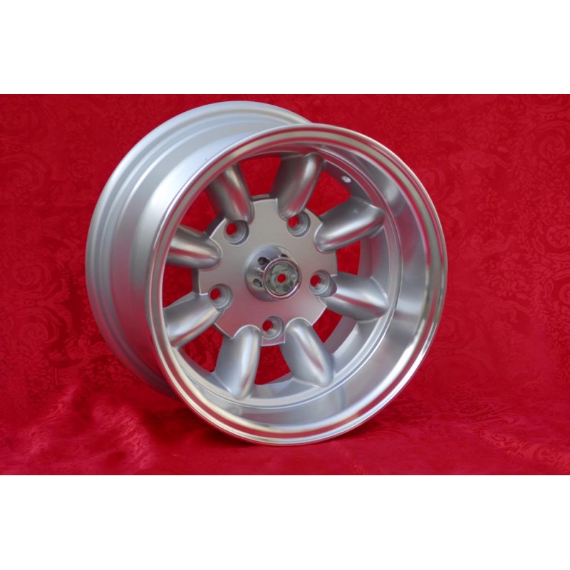 Design Minilite en finition silver/diamond cut. Dimensions: 2 jantes 5.5x13 deport ET25 poids Kg 4.8 + 2 jantes 7x13 deport ET-7 poids Kg 6.1 systeme de fixation PCD 5x130 diametre du trou central 90.1 mm. Convient aux modeles suivants: S800 S600 NSU TT TTS 110 1200C Wankelspider Fabrique par: Maxilite. Certificats d'homologation: YES. Garantie 3 ans par fabricant. Retour et remboursement possible pour les produits non utilises sans traces d'utilisation, dans l'emballage d'origine, selon les termes de la loi.