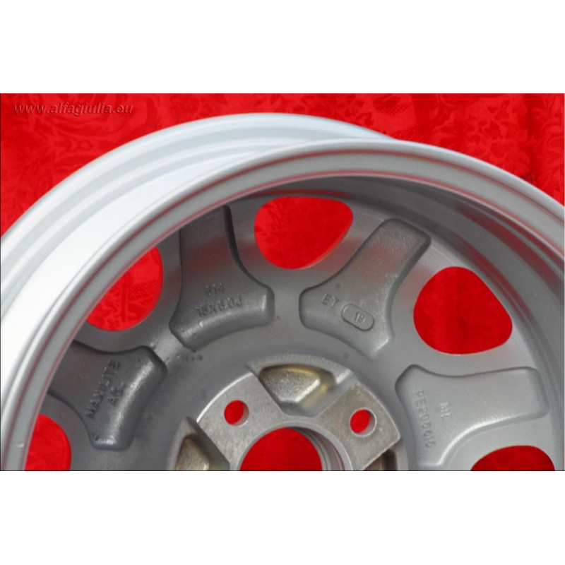 Design Speedline en finition silver dimensions 6x15 systeme de fixation PCD 4x108 deport ET19 diametre du trou central 65.1 mm poids de la jante simple Kg 6.2. Fabrique par: Maxilite. Garantie 3 ans par fabricant. Certificats d'homologation: TUV. Retour et remboursement possible pour les produits non utilises sans traces d'utilisation, dans l'emballage d'origine, selon les termes de la loi.