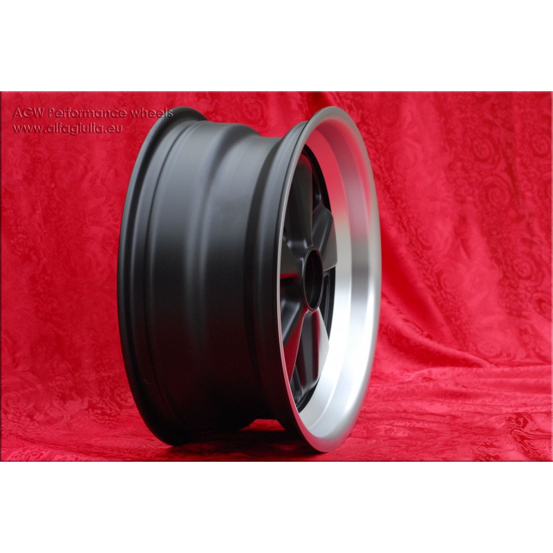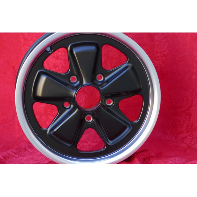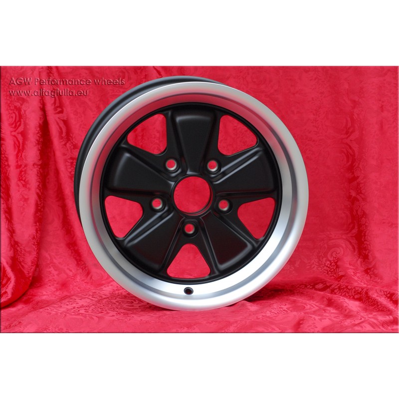 Design Fuchs en finition matt black/diamond cut. Dimensions: 2 jantes 6x15 deport ET36 poids Kg 6.2 + 2 jantes 7x15 deport ET23.3 poids Kg 6.5 systeme de fixation PCD 5x130 diametre du trou central 71.6 mm. Convient aux modeles suivants: 911 -1989 914-6 944 -1986 924 turbo-Carrera GT Fabrique par: Maxilite. Certificats d'homologation: YES. Garantie 3 ans par fabricant. Retour et remboursement possible pour les produits non utilises sans traces d'utilisation, dans l'emballage d'origine, selon les termes de la loi.