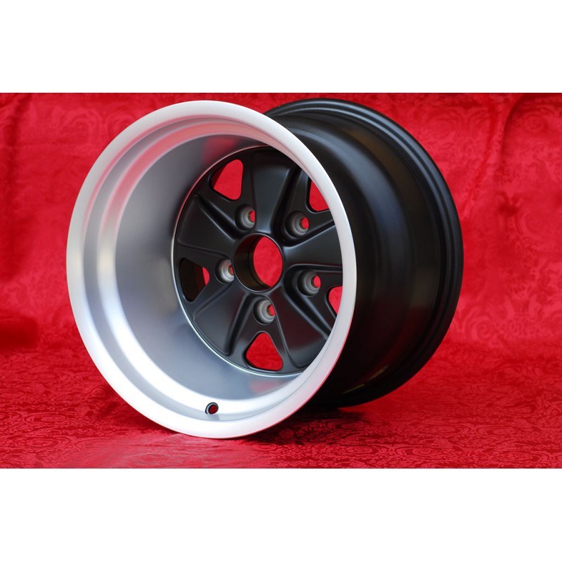 Design Fuchs en finition matt black/diamond cut. Dimensions: 2 jantes 9x15 deport ET15 poids Kg 7.7 + 2 jantes 11x15 deport ET-27 poids Kg 7.9 systeme de fixation PCD 5x130 diametre du trou central 71.6 mm. Convient aux modeles suivants: 911 SC Carrera -1987 Fabrique par: Maxilite. Certificats d'homologation: YES. Garantie 3 ans par fabricant. Retour et remboursement possible pour les produits non utilises sans traces d'utilisation, dans l'emballage d'origine, selon les termes de la loi.