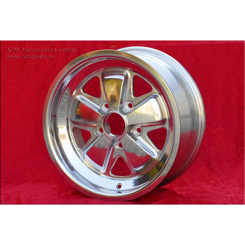 Design Fuchs en finition fully polished. Dimensions: 2 jantes 7x16 deport ET23.3 poids Kg 7.3 + 2 jantes 8x16 deport ET10.6 poids Kg 7.8 systeme de fixation PCD 5x130 diametre du trou central 71.6 mm. Convient aux modeles suivants: 911 -1989 914-6 944 -1986 turbo -1989 Fabrique par: Maxilite. Certificats d'homologation: YES. Garantie 3 ans par fabricant. Retour et remboursement possible pour les produits non utilises sans traces d'utilisation, dans l'emballage d'origine, selon les termes de la loi.