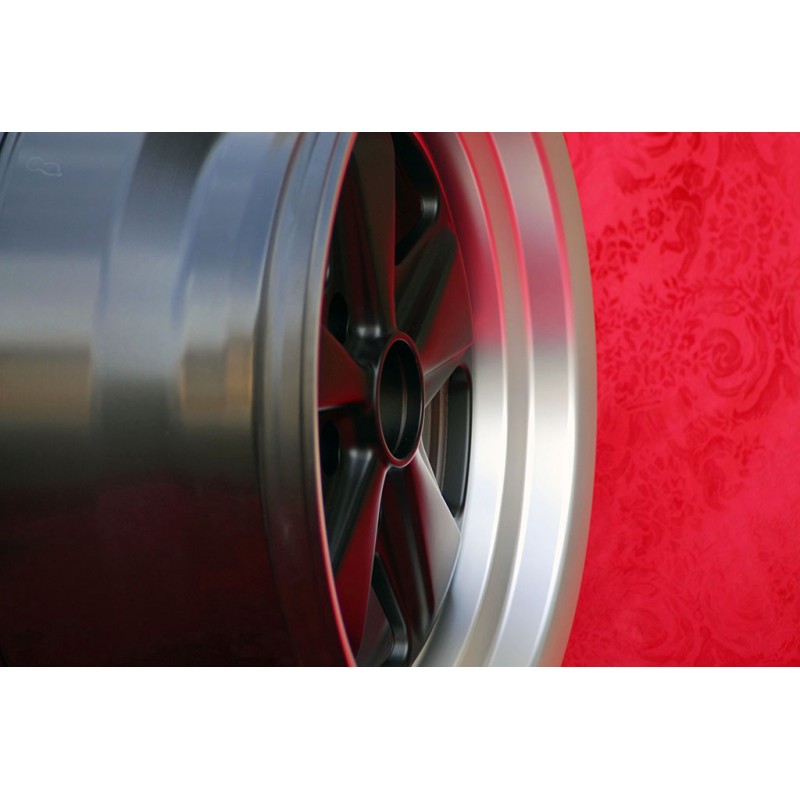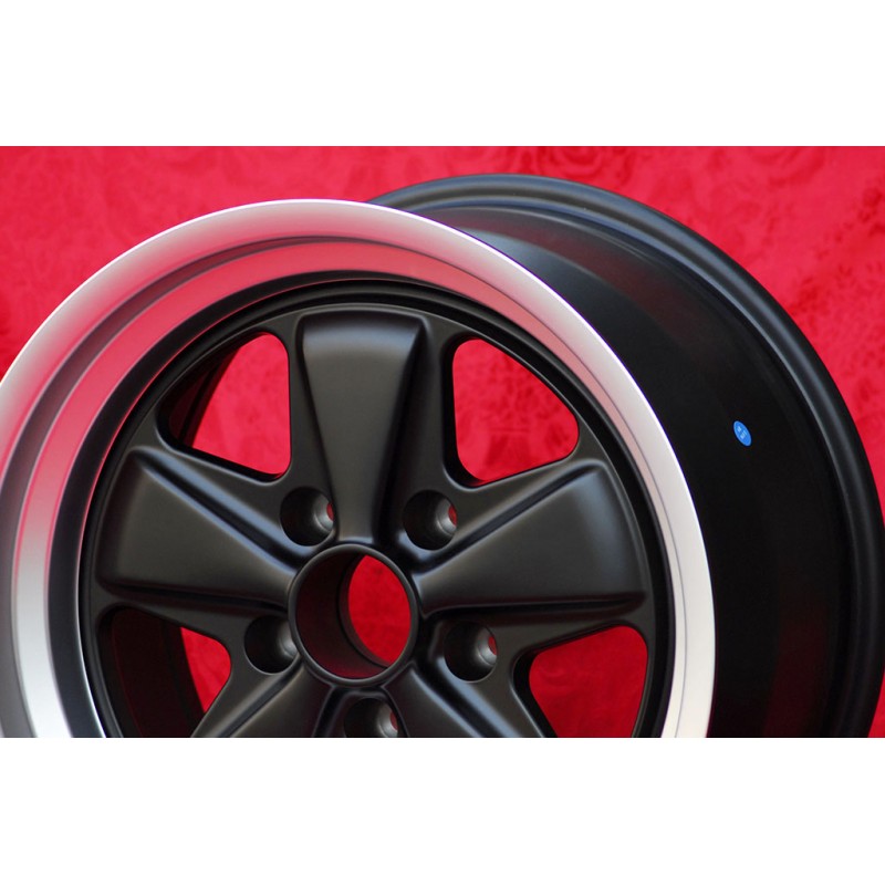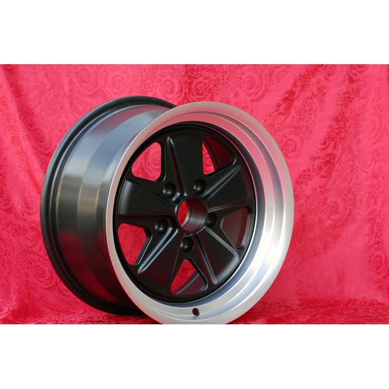 Design Fuchs en finition matt black/diamond cut. Dimensions: 2 jantes 8x17 deport ET10.6 poids Kg 9.8 + 2 jantes 9x17 deport ET15 poids Kg 10.6 systeme de fixation PCD 5x130 diametre du trou central 71.6 mm. Convient aux modeles suivants: 911 SC Carrera -1989 turbo -1987 Fabrique par: Maxilite. Certificats d'homologation: YES. Garantie 3 ans par fabricant. Retour et remboursement possible pour les produits non utilises sans traces d'utilisation, dans l'emballage d'origine, selon les termes de la loi.