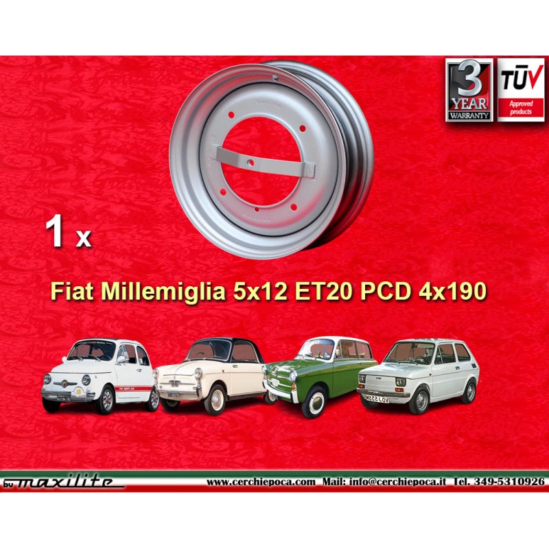 1 cerchio OE steel 3.5x12 ET28 4x190 Autobianchi Fiat 500 silverDestinatario :
