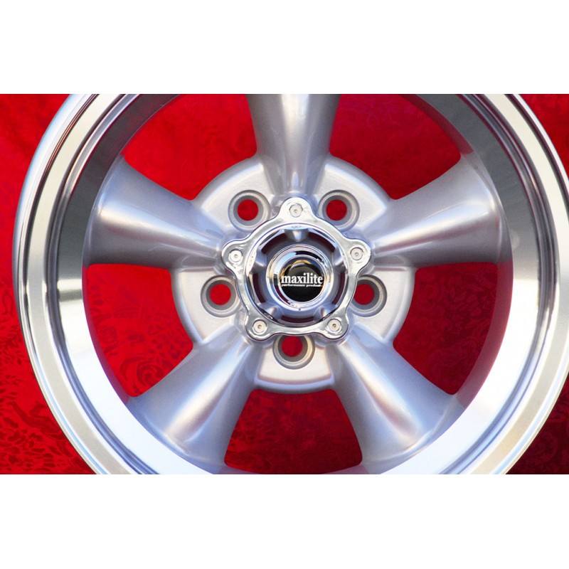 Design Torq Thrust in finitura silver/diamond cut dimensioni 9x15 sistema di fissaggio PCD 5x114.3 offset ET-12 diametro foro centrale 83.1 mm peso singolo cerchio Kg 8.1. Prodotto da: Maxilite. 3 anni di garanzia del produttore. Certificati di omologazione: TUV. Possibile restituzione e rimborso per prodotti non usati e senza segni di utilizzo, negli imballi originali, secondo i termini di legge.