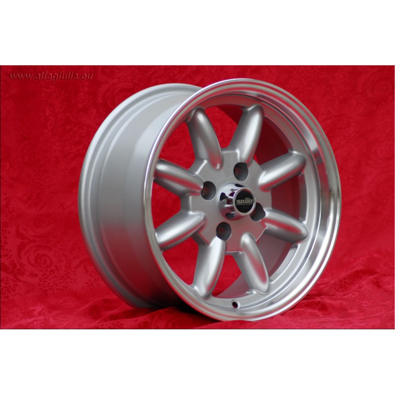 Design Minilite in finitura silver/diamond cut dimensioni 7x15 sistema di fissaggio PCD 4x108 offset ET5 diametro foro centrale 63.4 mm peso singolo cerchio Kg 6.7. Prodotto da: Maxilite. 3 anni di garanzia del produttore. Certificati di omologazione: TUV. Possibile restituzione e rimborso per prodotti non usati e senza segni di utilizzo, negli imballi originali, secondo i termini di legge.