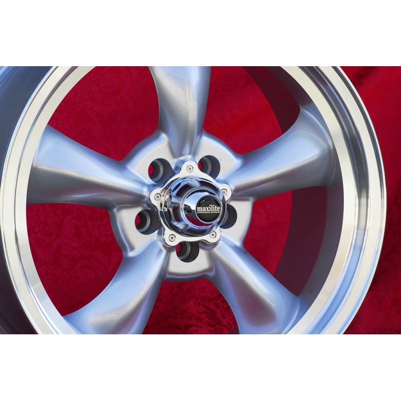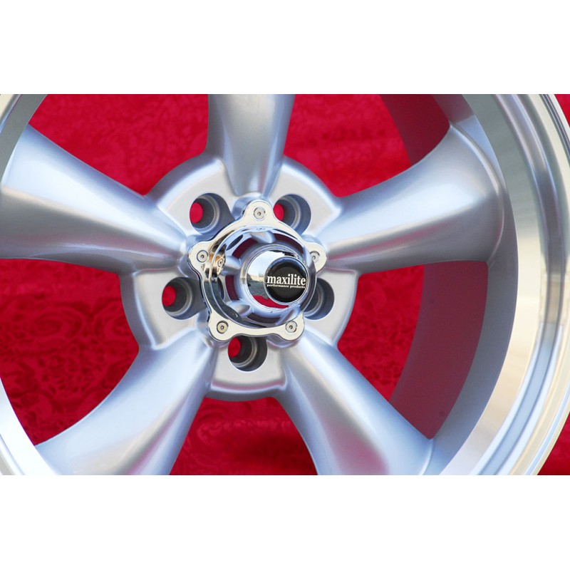 Design Torq Thrust in finitura silver/diamond cut dimensioni: 2 cerchi 9x19 offset ET35 peso Kg 12.4 + 2 cerchi 10x19 offset ET42 peso Kg 13.2 sistema di fissaggio PCD 5x114.3 diametro foro centrale 70.6 mm. Per vetture: Mustang S197 (2005-14) LAE (2015-) Prodotti da: Maxilite. Certificati di omologazione: YES. 3 anni di garanzia del produttore. Possibile restituzione e rimborso per prodotti non usati e senza segni di utilizzo, negli imballi originali, secondo i termini di legge.