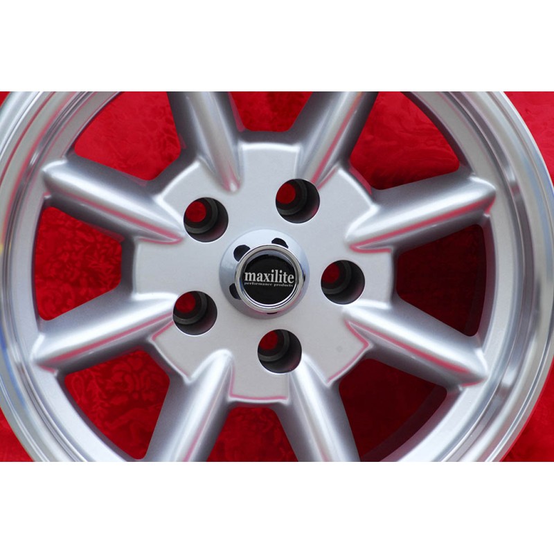 Design Minilite in finitura silver/diamond cut dimensioni 9x15 sistema di fissaggio PCD 5x114.3 offset ET-12 diametro foro centrale 83.1 mm peso singolo cerchio Kg 9.8. Prodotto da: Maxilite. 3 anni di garanzia del produttore. Certificati di omologazione: TUV. Possibile restituzione e rimborso per prodotti non usati e senza segni di utilizzo, negli imballi originali, secondo i termini di legge.