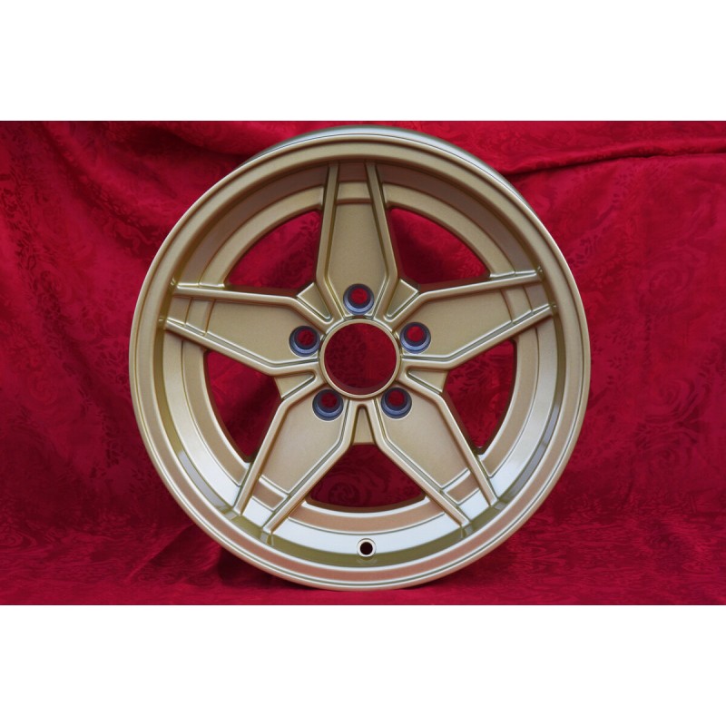 Design Stratos in finitura gold dimensioni: 2 cerchi 8x15 offset ET15 peso Kg 8.3 + 2 cerchi 12x15 offset ET-25 peso Kg 9 sistema di fissaggio PCD 5x108 diametro foro centrale 67.1 mm. Per vetture: Stratos Gr4 FERRARI 308 GTB Gr4 Prodotti da: Maxilite. Certificati di omologazione: YES. 3 anni di garanzia del produttore. Possibile restituzione e rimborso per prodotti non usati e senza segni di utilizzo, negli imballi originali, secondo i termini di legge.