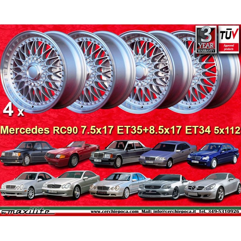 4 cerchi RC90 7.5x17 ET35 + 8.5x17 ET34 5x112 Mercedes Audi 124