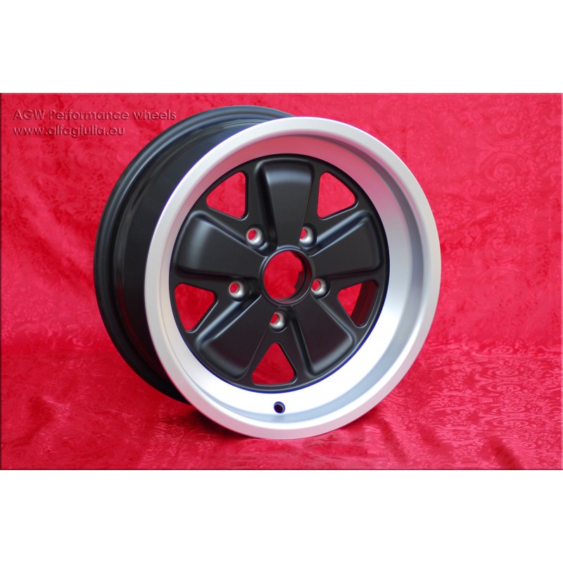 Design Fuchs in finitura matt black/diamond cut dimensioni: 2 cerchi 7x16 offset ET23.3 peso Kg 7.4 + 2 cerchi 9x16 offset ET15 peso Kg 8.3 sistema di fissaggio PCD 5x130 diametro foro centrale 71.6 mm. Per vetture: 911 -1989 914-6 944 -1986 turbo -1989 Prodotti da: Maxilite. Certificati di omologazione: YES. 3 anni di garanzia del produttore. Possibile restituzione e rimborso per prodotti non usati e senza segni di utilizzo, negli imballi originali, secondo i termini di legge.