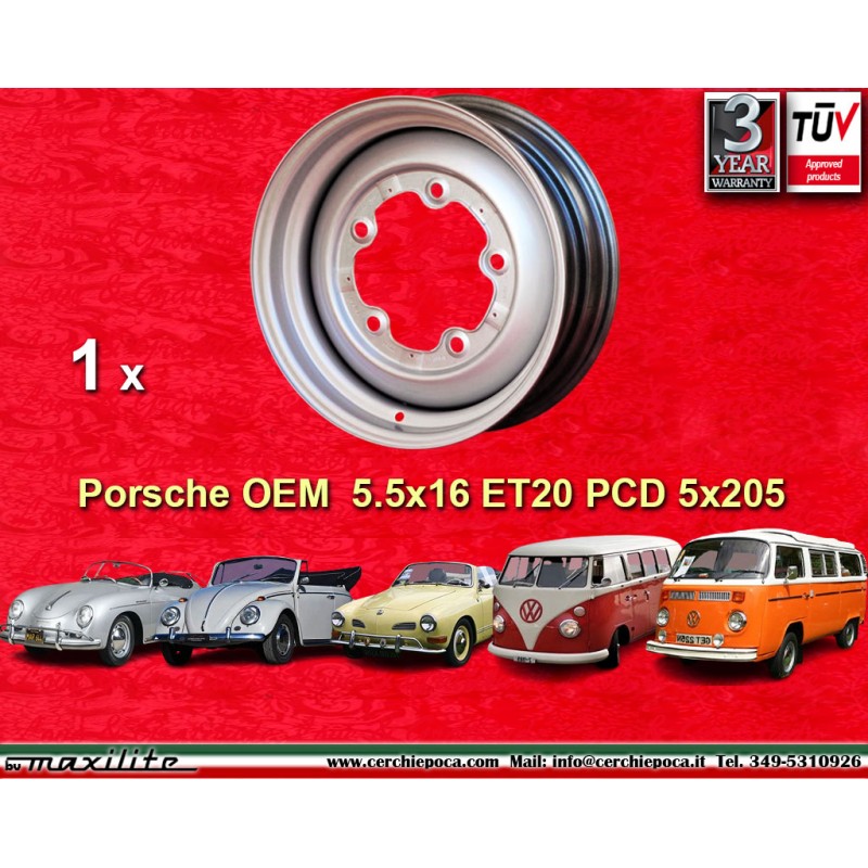1 cerchio OE steel 5.5x16 ET20 5x205 Volkswagen Porsche 356 silverDestinatario :