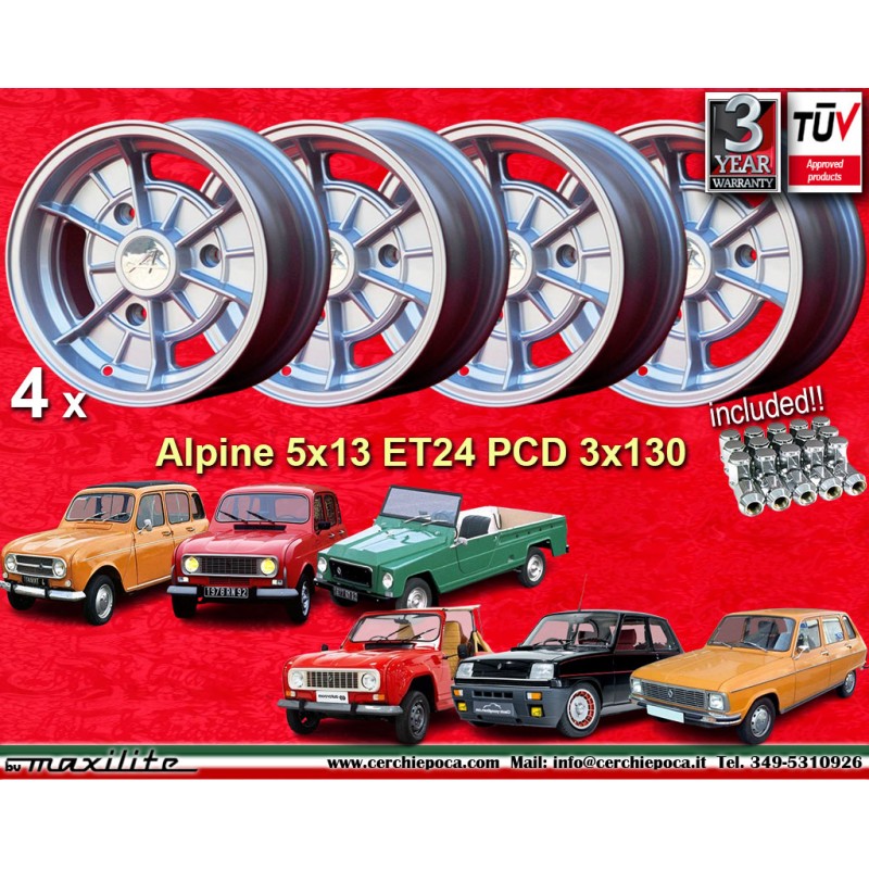 4 cerchi Alpine 5x13 ET24 + kit dadi KM10 126 3x130 Renault R4